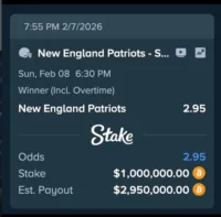 Το Σάββατο, ο Drake, ο οποίος διατηρεί επιχειρηματική συνεργασία με την online στοιχηματική πλατφόρμα Stake, ανακοίνωσε στα social media πως επέλεξε τους Patriots για τη νίκη στο Super Bowl.