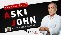 Στο νέο επεισόδιο της σειράς Ask John, ο Τζον Τάραμας απαντάει σε ερωτήσεις φίλων για το ποσοστό κέρδους του καζίνο στη ρουλέτα, τα buy-ins σε Λουτράκι και Πάρνηθα και το μέτρημα στο μπλάκτζακ!Περισσότερα